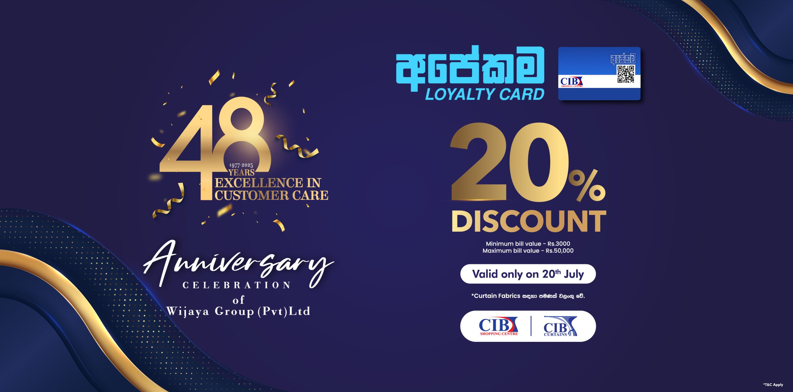 විජය සමූහ ව්යාපාරයේ 48වන සංවත්සරය නිමිත්තෙන් 'අපේකම' කාඩ්පත් හිමියන් සඳහා විශේෂ වට්ටමක්...!