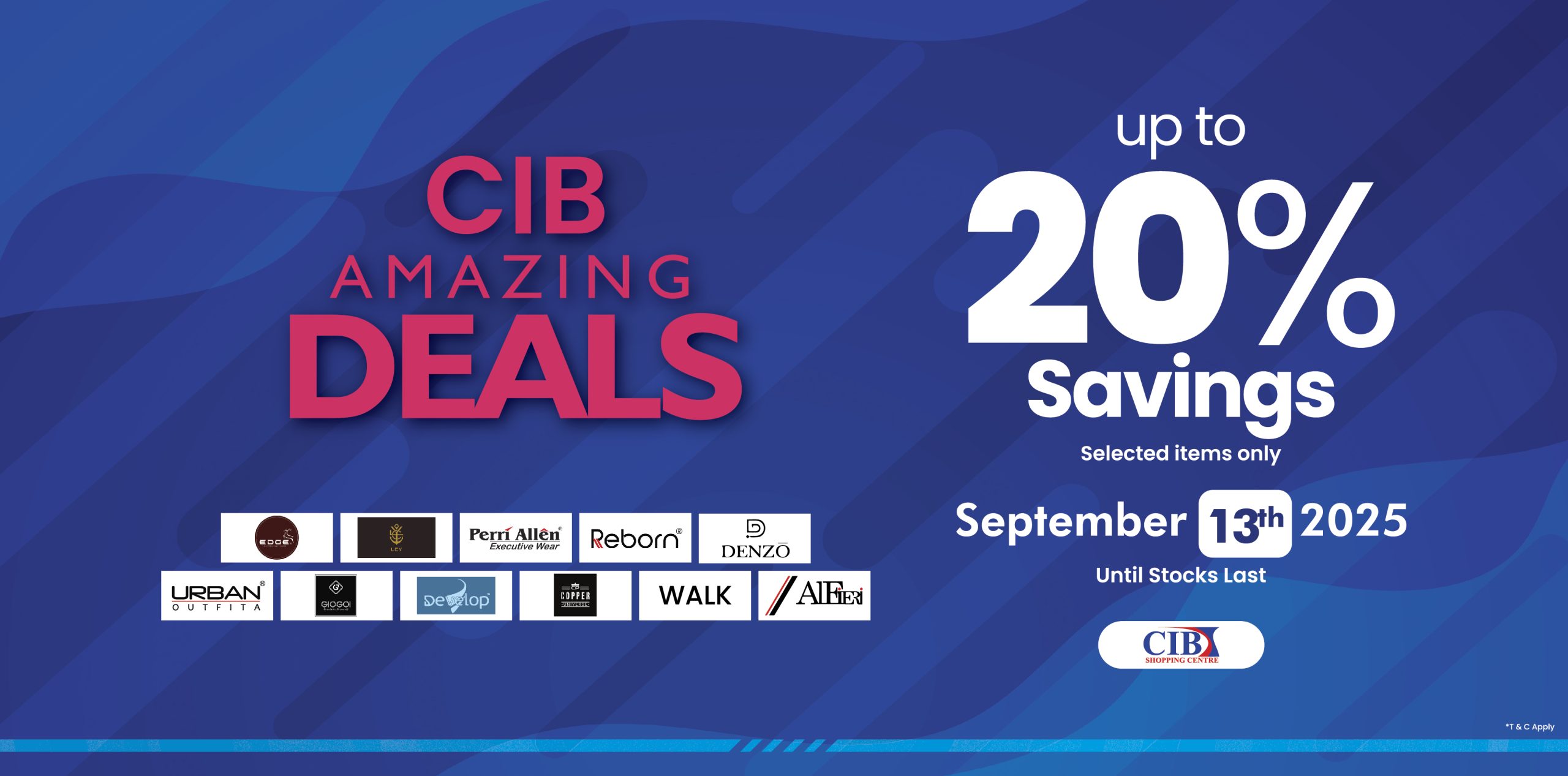 Enjoy savings upto 20% on a wide range of brands when you shop at CIB Shopping Centres island-wide on September 13th 2025.
