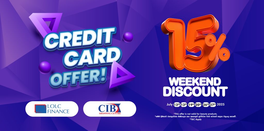 β Enjoy an amazing 15% discount with your LOLC Credit Card when you shop with us at CIB Shopping Centres Island wide !