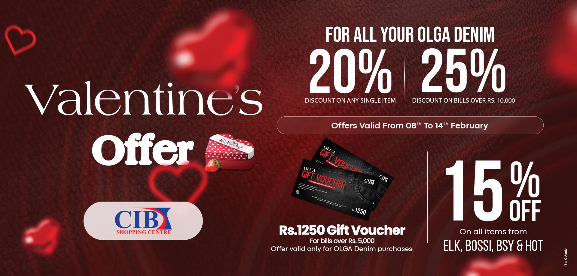 CIB Shopping Centre is excited to announce our exclusive Valentine’s Day offers, designed to help you find the perfect gift (or a little something for yourself).Whether you’re looking for premium denim or trendy essentials, we have curated deals across our top brands.